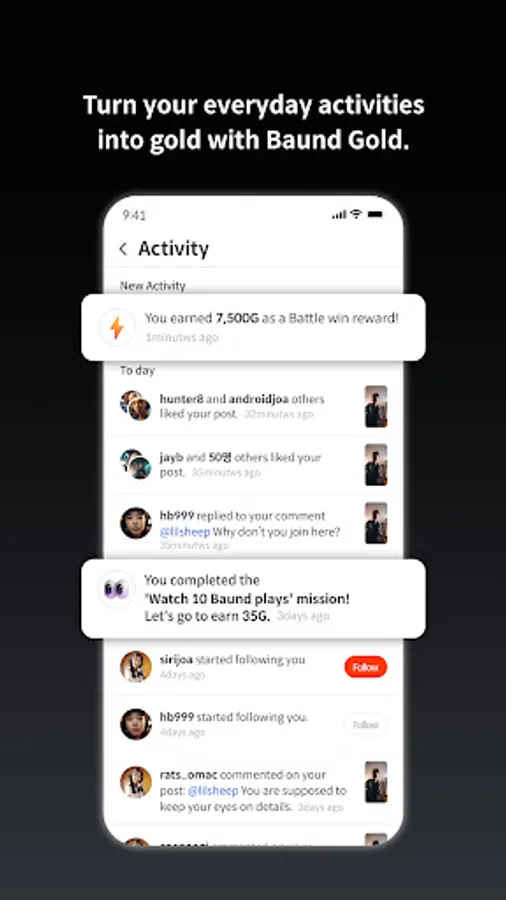 You can earn rewards for your daily activities using the Baund app. Turn your everyday actions into Baund Gold and get access to exclusive benefits.