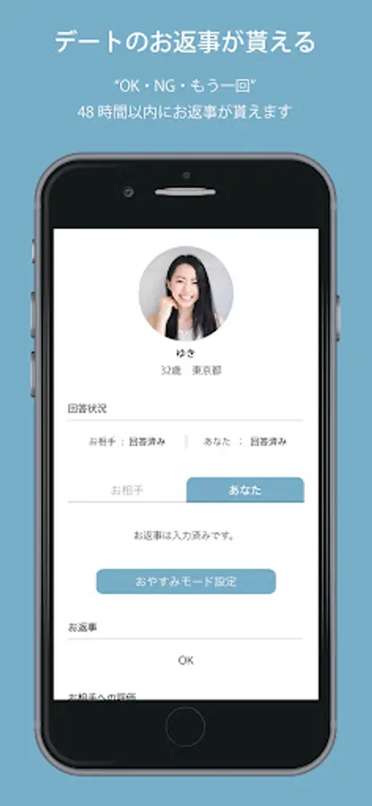 ■You'll get a reply after the date, so don't worry if you don't have the courage to say no. You can get along smoothly with people who are OK with you.