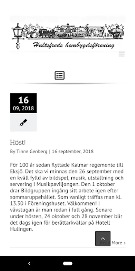 In times of concern, the band is always a force, and today, when so many social conditions are reversed, the maintenance of tradition becomes more necessary than ever. To a degree, Hultsfred's hometown association wants to work for hometown knowledge and homebuilding on modern grounds, hoping in this endeavor to assist all the people, the old and the young people of the countryside.
