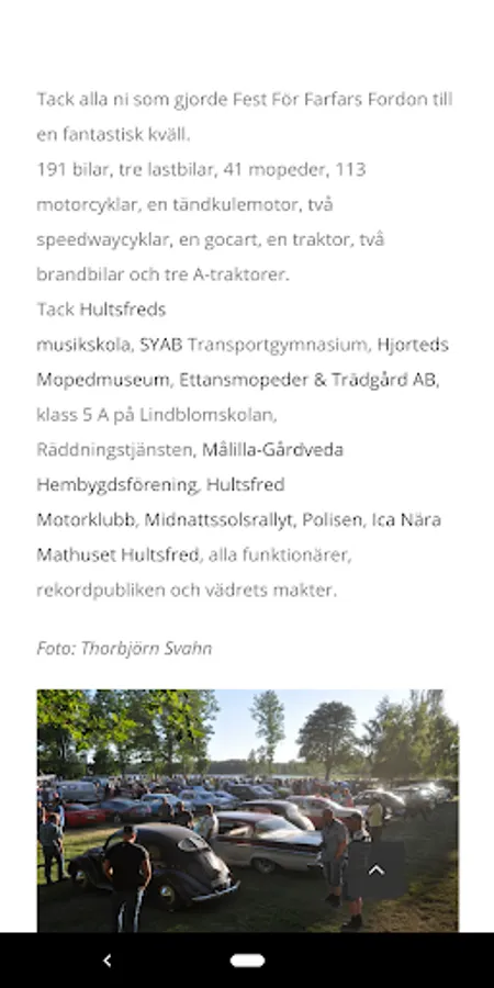 Information about what happens on the mopfront in Hultsfred and surroundings. Behind the app is Hultsfred's Hometown Association's Veteran Vehicle Section.