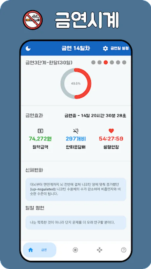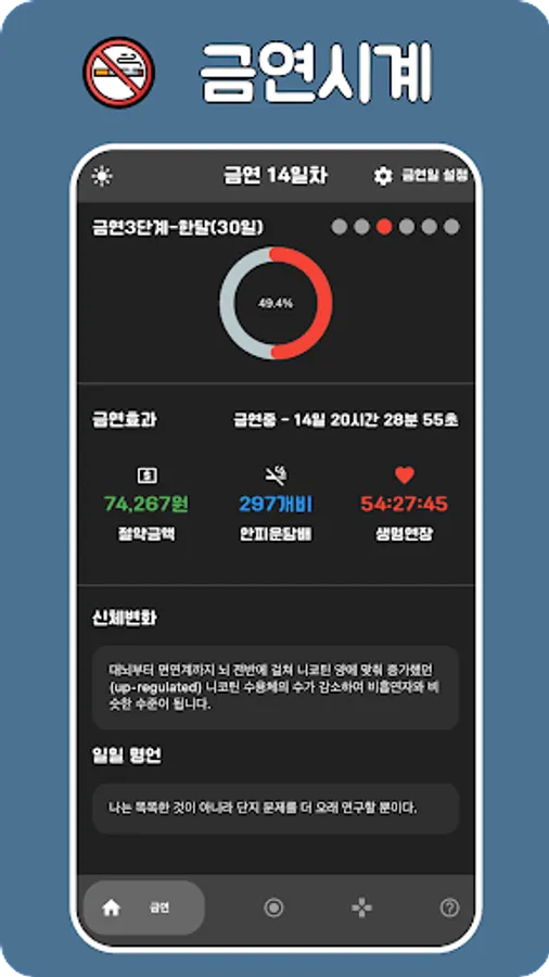 In addition, a UI is provided that allows you to see at a glance the economic and physical benefits of quitting smoking.