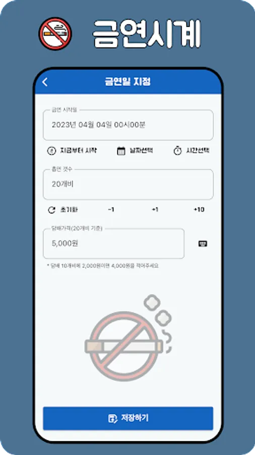 - Savings amount: Automatic calculation of savings amount according to smoking cessation time based on the price of cigarettes smoked per day