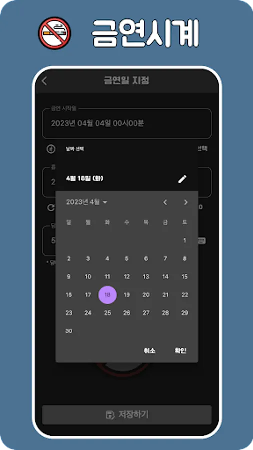 - You can set the smoking cessation start date from now or a separate calendar and time.