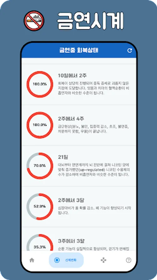 2. During the smoking cessation period, you can see the current level of recovery step by step.