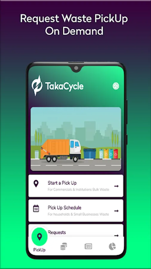 Our App features a new waste collection for recycling in Africa rapidly growing cities. Instead of waiting for inefficient waste collection systems and unreliable pickup trucks to collect your waste, TakaCycle gives you schedule notifications to pick your Municipal households and small-businesses waste twice a week. For commercial and institutions with bulk waste, TakaCycle lets you request a pickup on-demand with just the tap of a button. TakaCycle platform is cheaper, efficient, and reliable than local incumbent systems, faster than their service, and Waste collection made easy and fantasized.