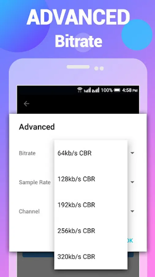 - Supports Bitrate 48 kb/s , 64 kb/s , 128 kb/s , 192 kb/s , 256 kb/s , 320 kb/s.