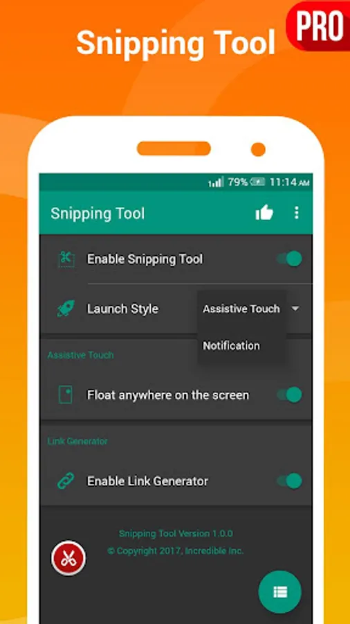 Quick access - Tap Assistive touch (like Facebook chathead) or accessible from notification.