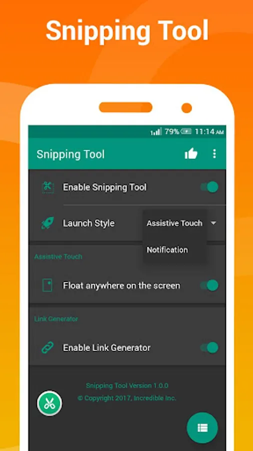 When you turn the Snipping service ON, a sniphead will appear on your screen that allows you to snip any portion of your screen with just a tap. Once you tap it, the current screen selection mode will be open ,Use your fingers to select portion of screen and release your finger when done. That's about it. You're all set and good to share the piece that you just snipped with anyone as image.