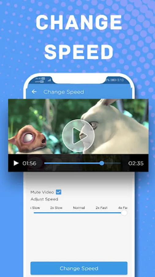 - Speed Video : Do video slow motion or fast motion (2x, 4x, 6x, 8x, 10x)