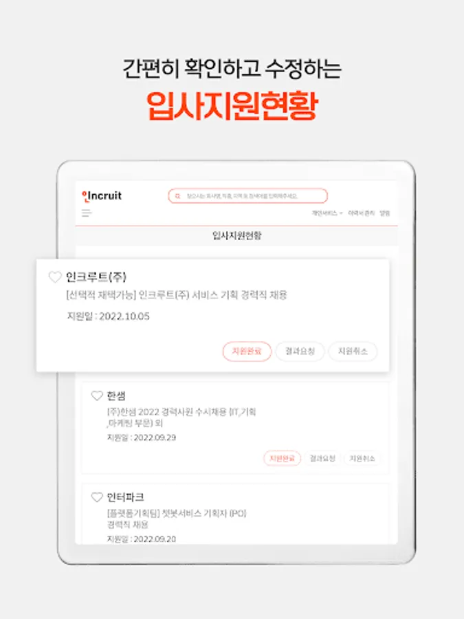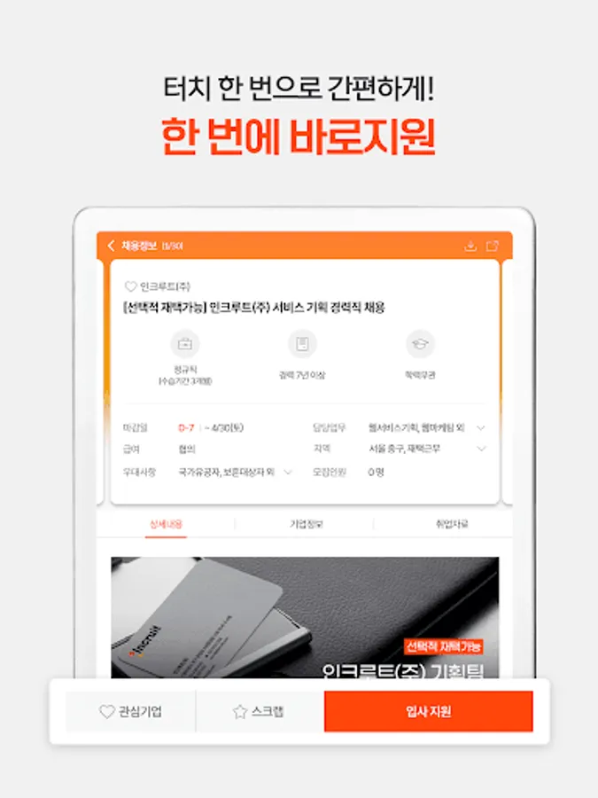 Korea's first job portal site's application that can do everything from job search to job applications.