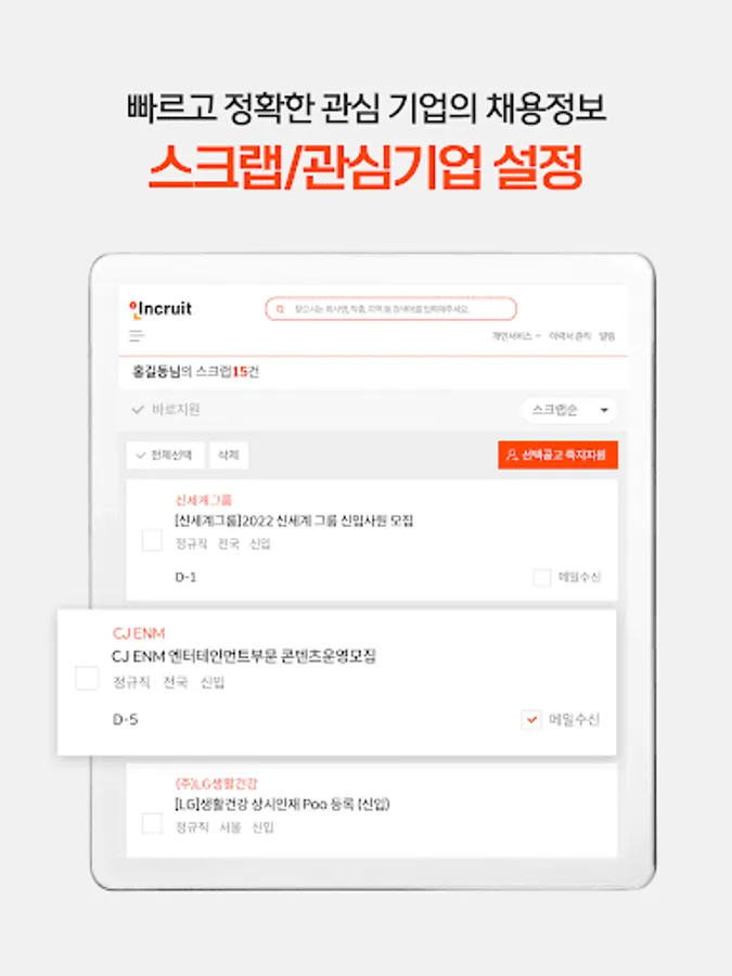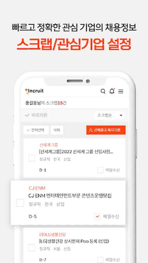 With Incruit Employment Assistant, you can check job information faster and more accurately than anyone else.