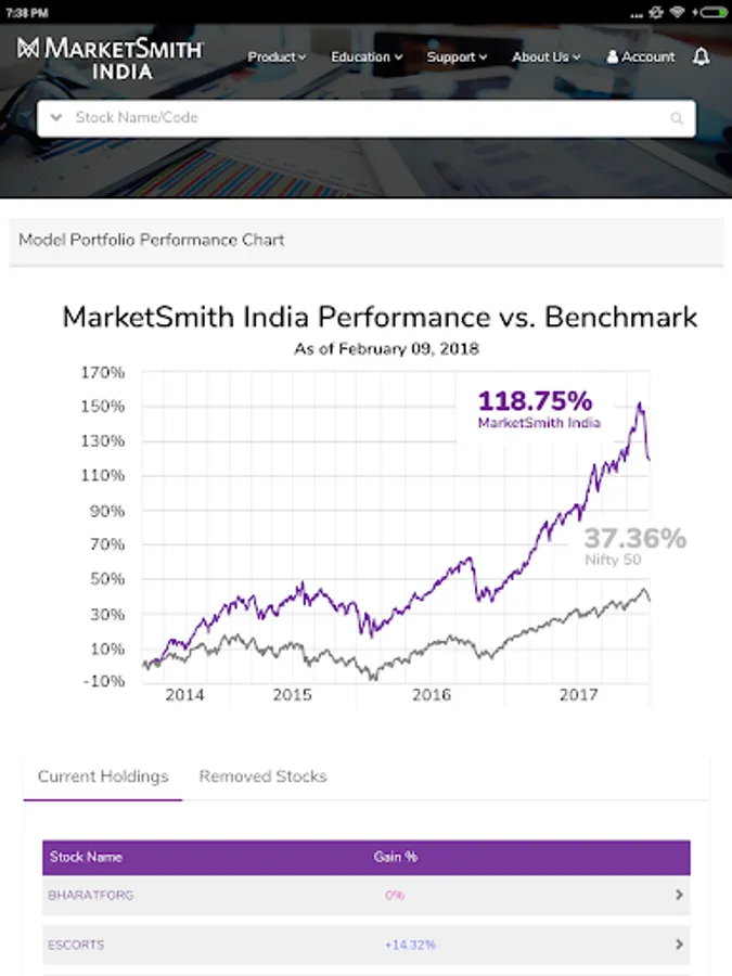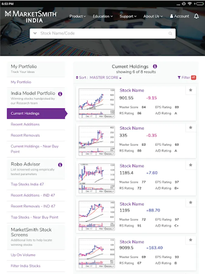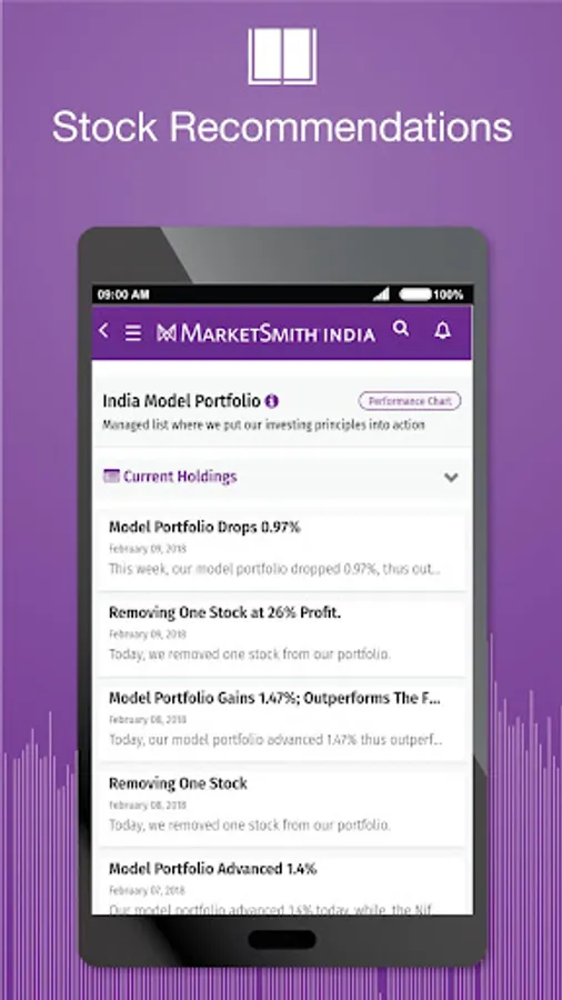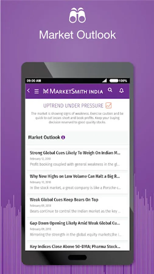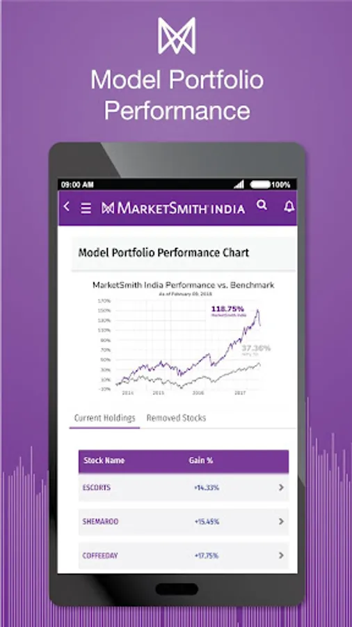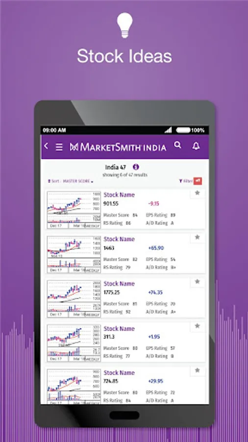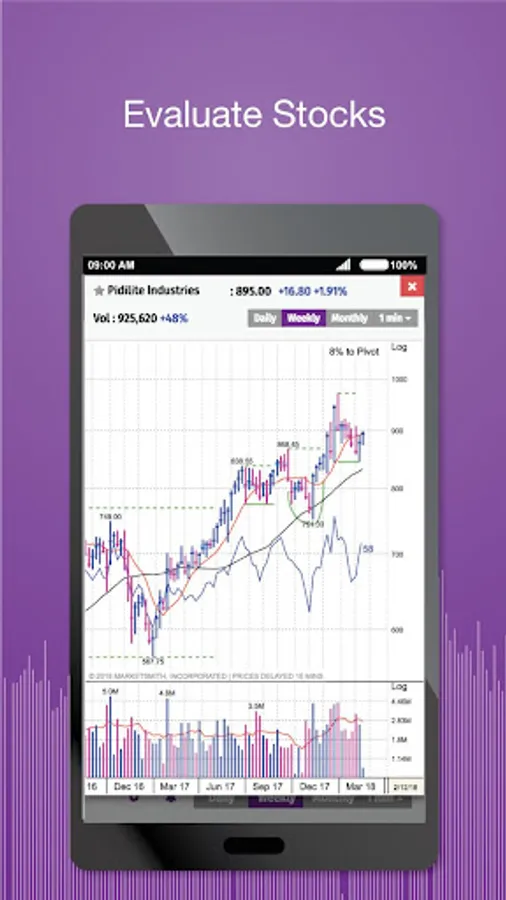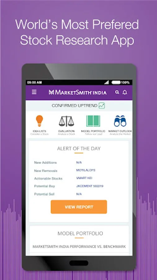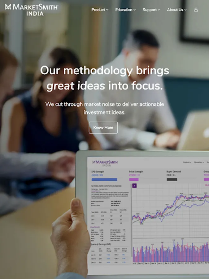 MarketSmith India, an investing app for Android™ smartphones, is built on a method with a 50-year history of portfolio outperformance. Its robust design delivers quantitative and qualitative information to guide you in finding strong equities, evaluating them, and timing buys and sells on the Indian stock exchange.