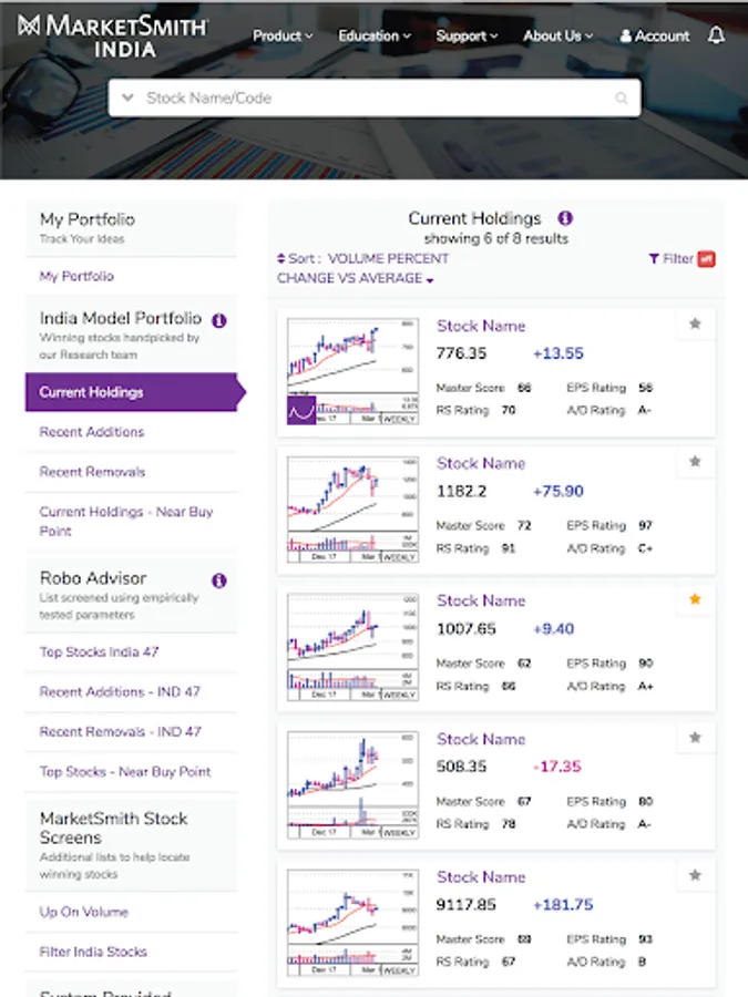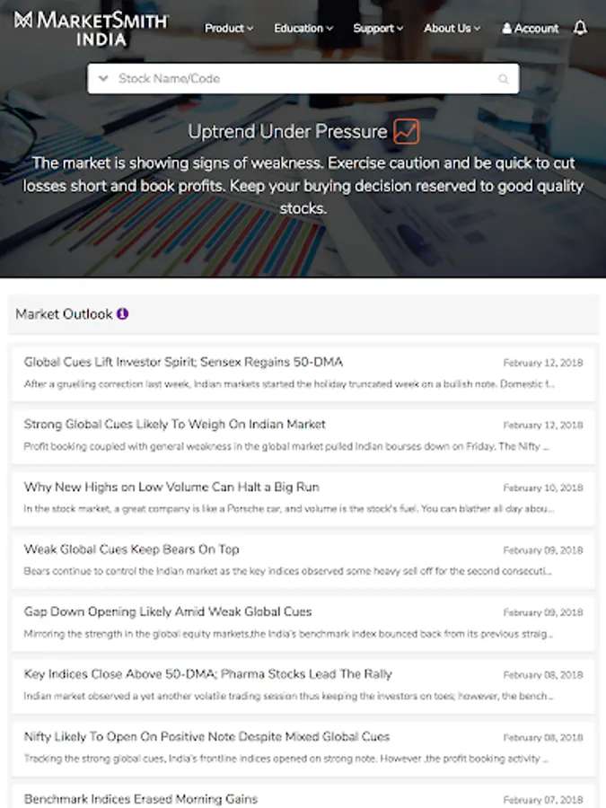 Stock research is critical to investing success, but gathering all that information can take hours. With MarketSmith India, you’ll know the strengths and weaknesses of individual Indian stocks in minutes—based on concrete facts.