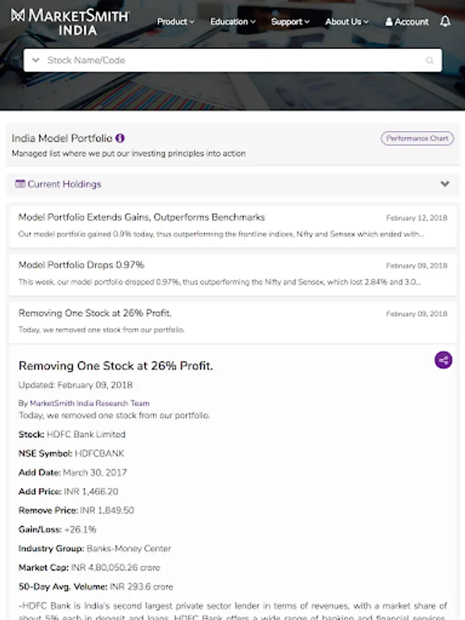 Model Portfolio — offers you the chance to follow the application of MarketSmith investing principles and learn basic portfolio management. This commentary is a great resource for investors new to stock research.
