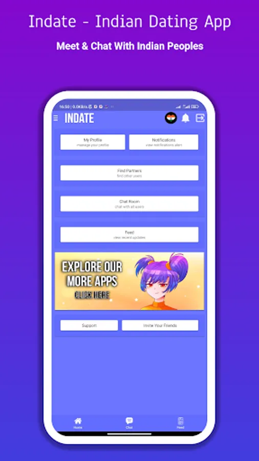 Indate: Indian Dating App - Stay connected with people from all over the People Republic Of Bangladesh, chat and more, create your profile and connect the social network and start chatting with all the people from all over India.
