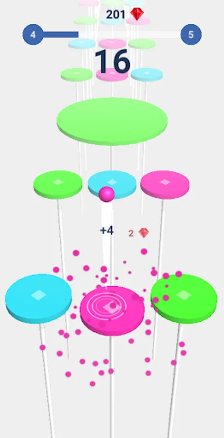 • move the ball over colored circles and collect diamonds free