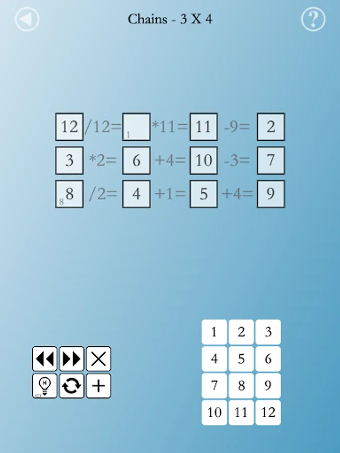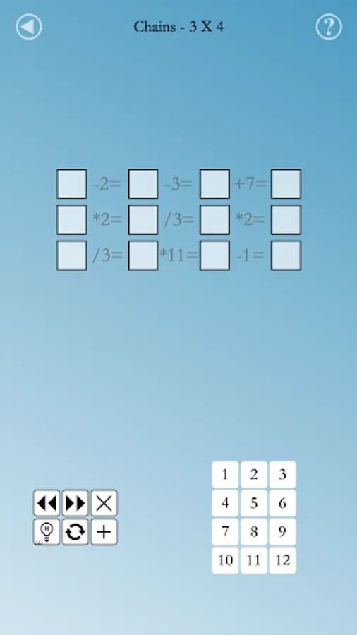 Enter the numbers from 1 to X in the squares, once each, so that the given equations are correct. (Each equation begins at one square and ends at the next square; X is the total number of squares.)