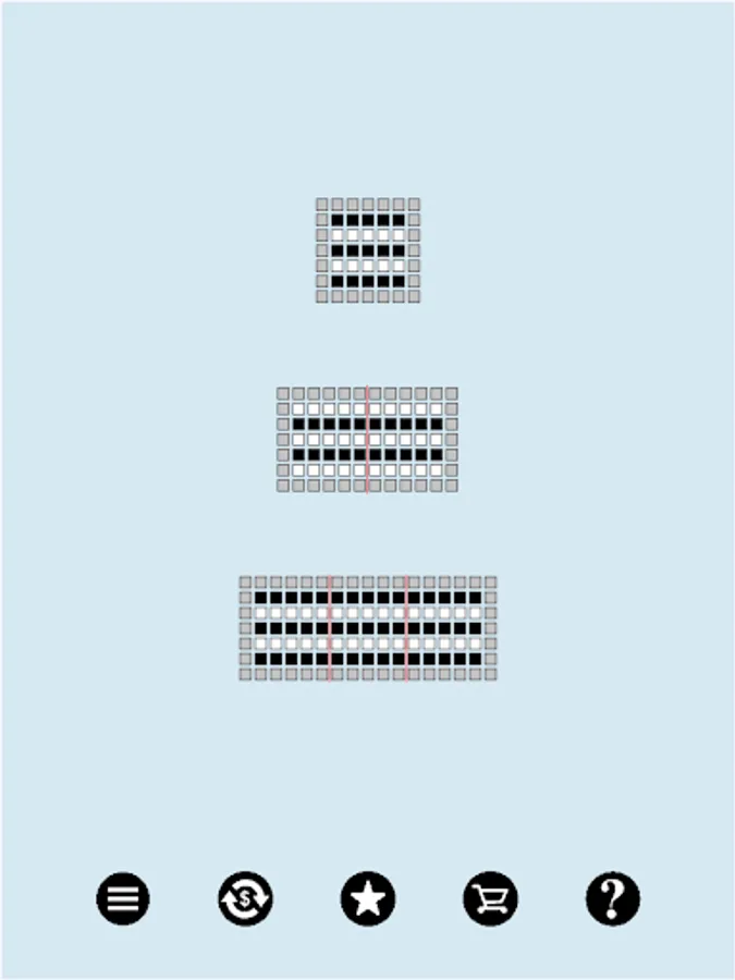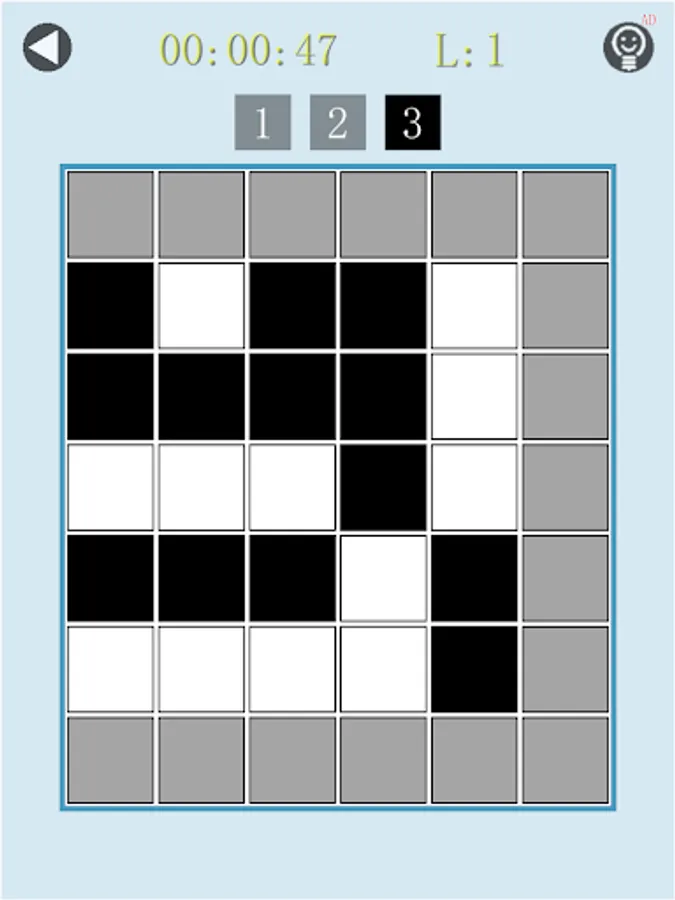 Including hexagon and square two kinds of board. There are some disordered black and white blocks on it. Draw a stroke from any position on the board, and the color of the block that the line passes through is reversed. When the color of each circle from the center outward is same (black or white) . The puzzle is solved.