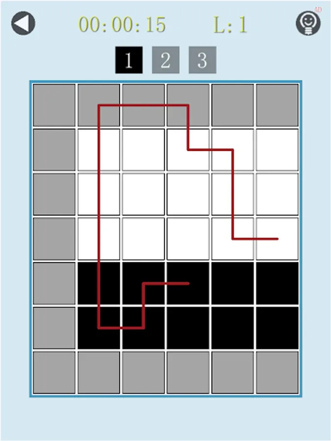 3. Draw a continuous line in each sub area. The black and white of the block where the line passes is reversed.