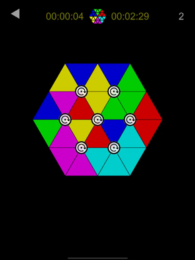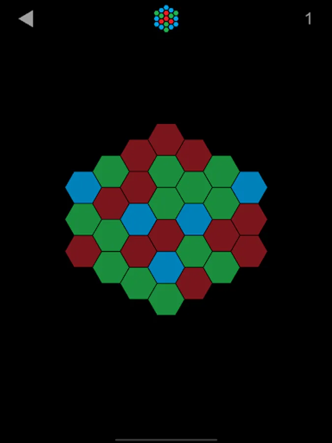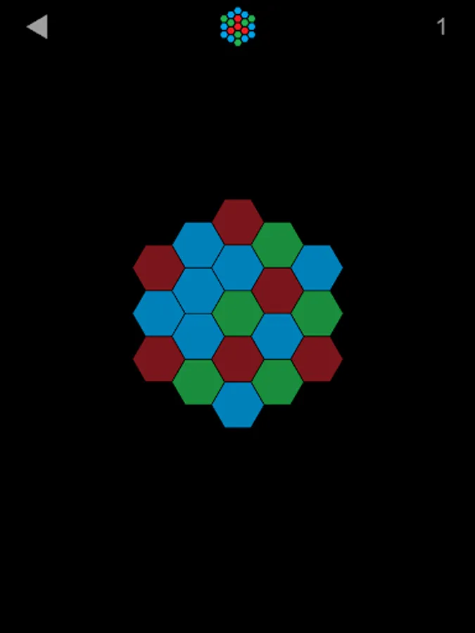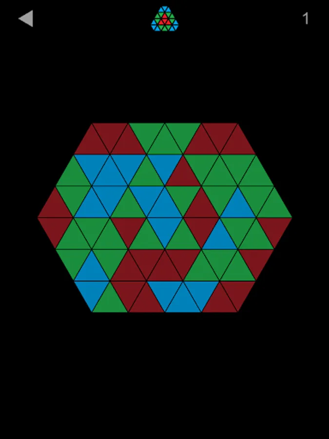 Unified Color: Click to make all polygons have same color. More polygons will change the color when you click ones. There are three shapes(triangle, square, hexagon) and each have some patterns and six levels.