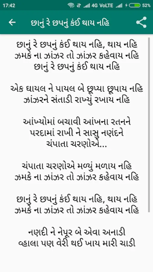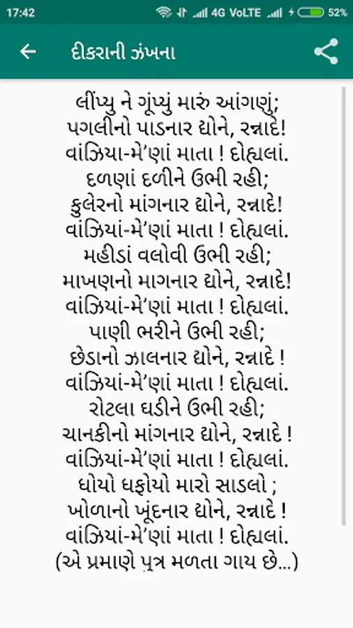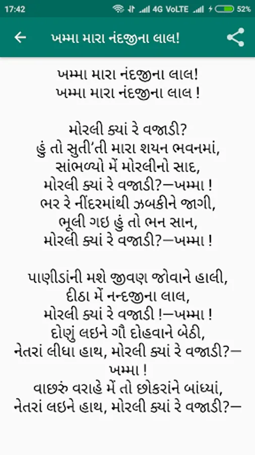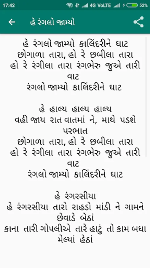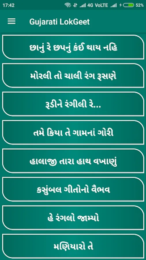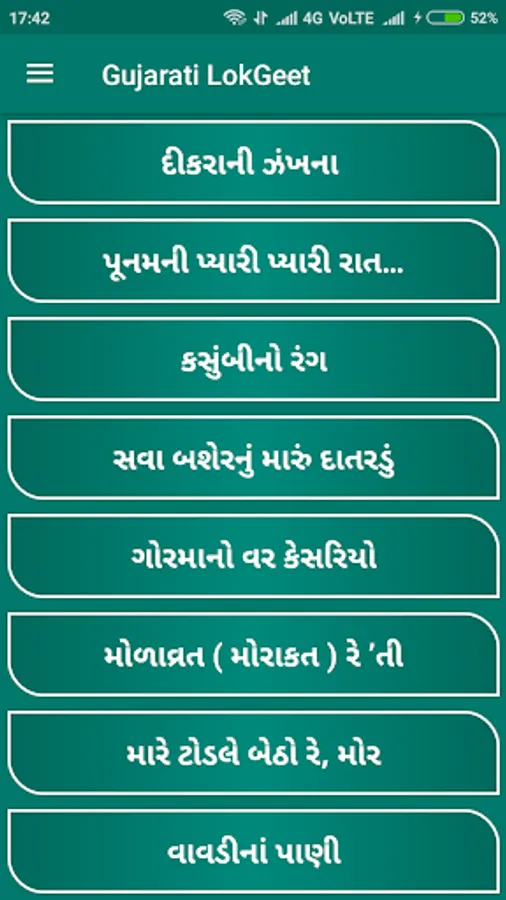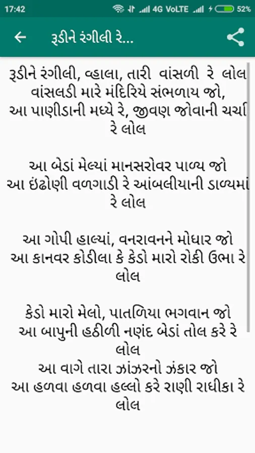 Gujarati Lokgeet android application is best collection of song. that is easy to share friend.