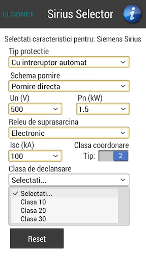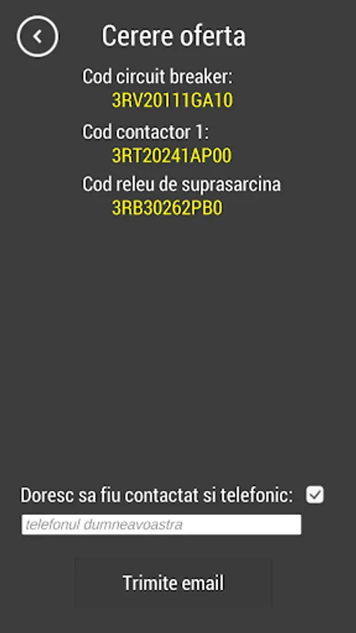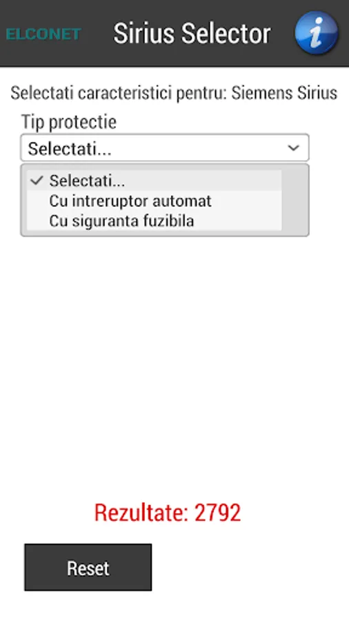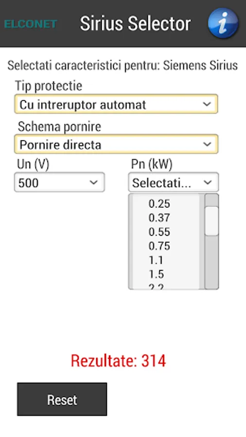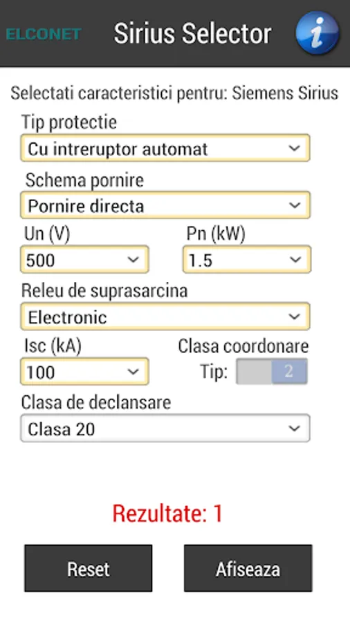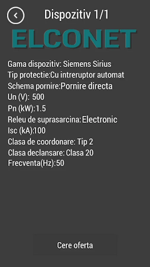 The application will help you identify the desired product based on technical specification of the portal elconet.ro