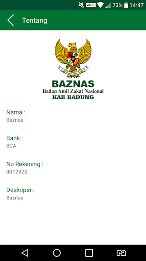 Baznas Badung is an application launched by the National Amil Zakat Agency (BAZNAS) in the city of Bali to facilitate infaq, zakat fitrah, and zakat mal
