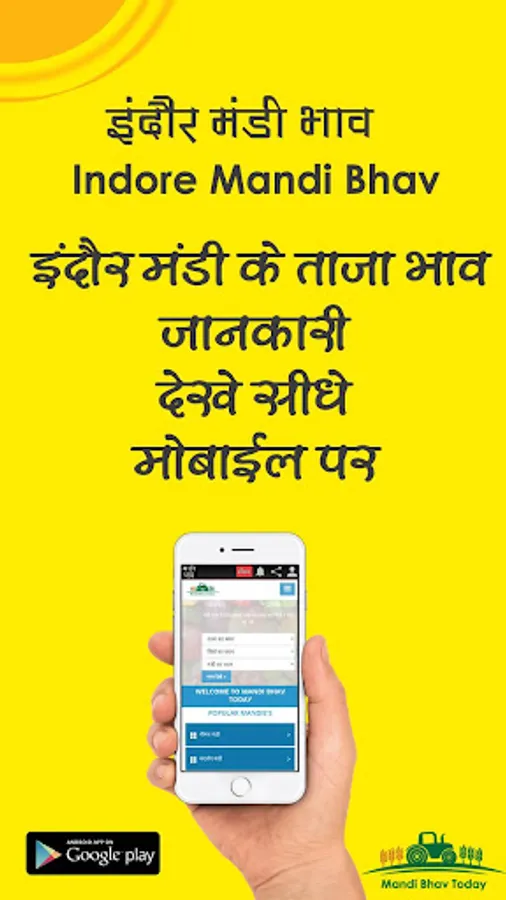 इंदौर मंडी भाव / Indore Mandi Bhav मोबाइल एप्लीकेशन में आपका स्वागत हे, इंदौर का सवाधिक लोकप्रिय Mandi Bhav मोबाईल एप्लीकेशन. किसानो को समर्पित यह हमारा एप्लीकेशन इंदौर के मंडी भाव के साथ साथ खेती बाड़ी की जानकारी, मोसम की जानकारी, फसल की तेजी मंदी रिपोर्ट व कृषि सम्बन्धी सवाल जवाब की सुविधा भी देता हे. Indore Mandi Bhav Application is Smartest way to check Latest Mandi Bhav of Indore online, We provide latest mandi Bhav online of Indore, Madhya Pradesh