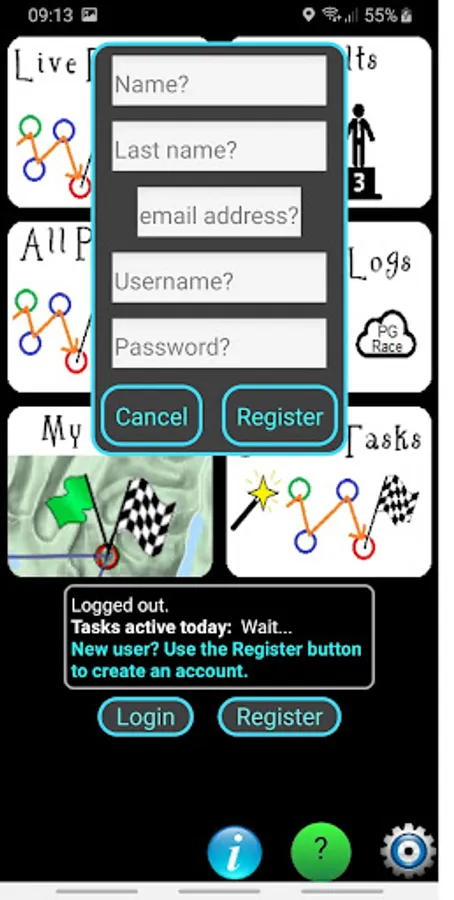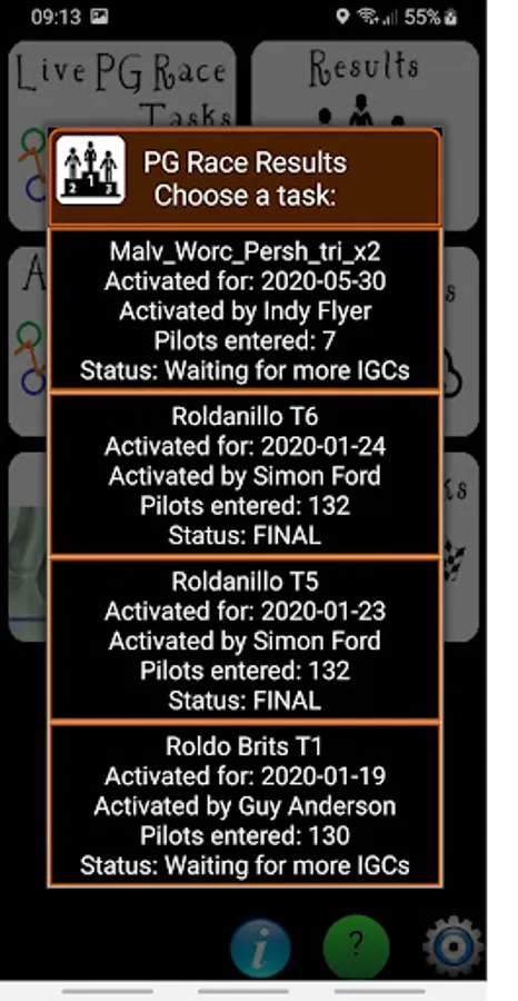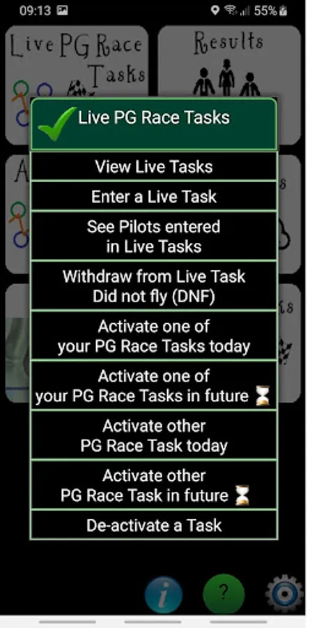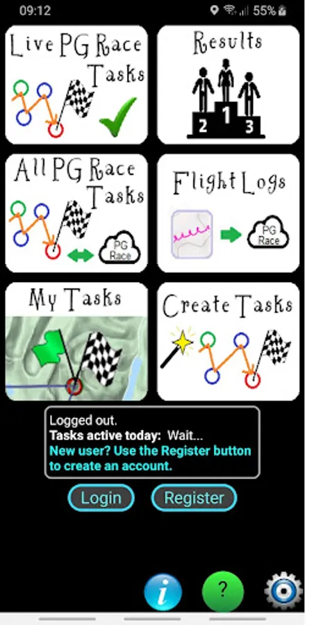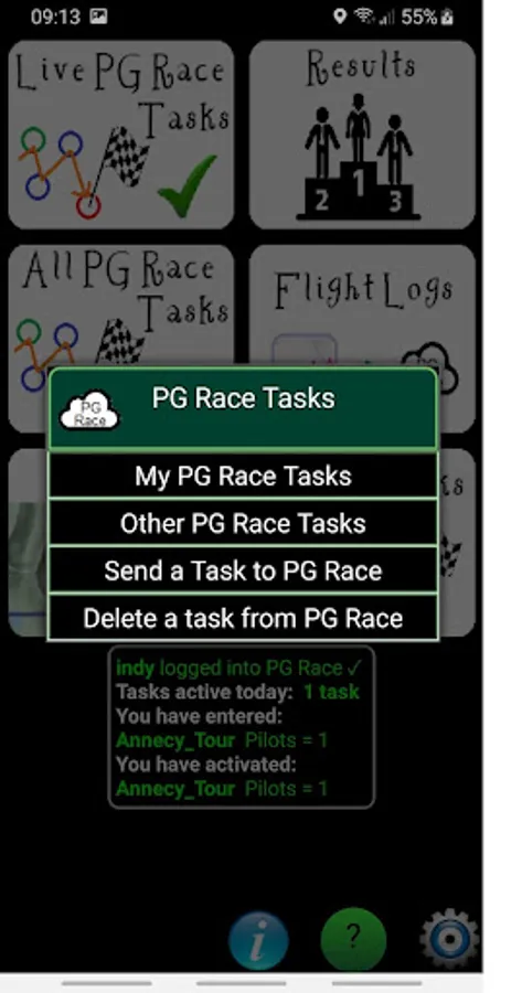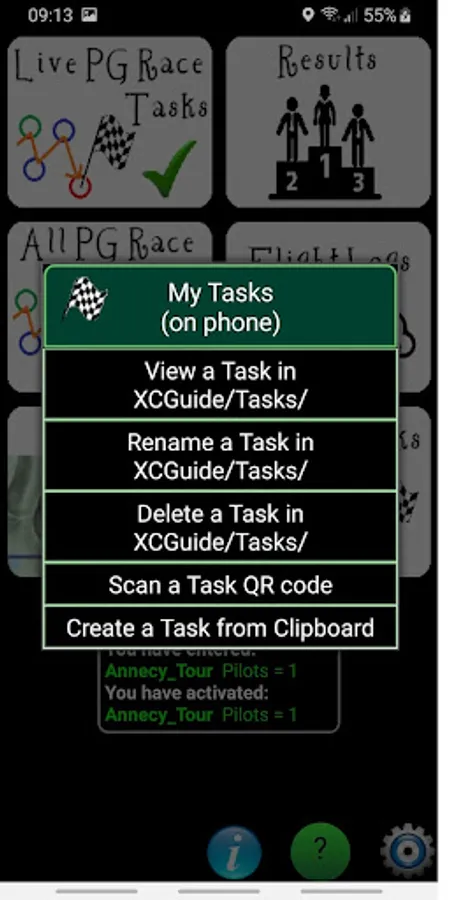 1) View tasks, either shared locally, via QR code, or downloaded from PG Race