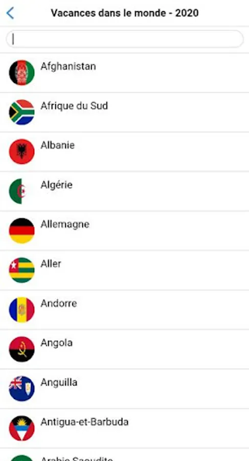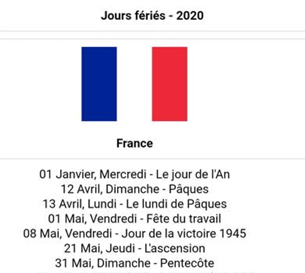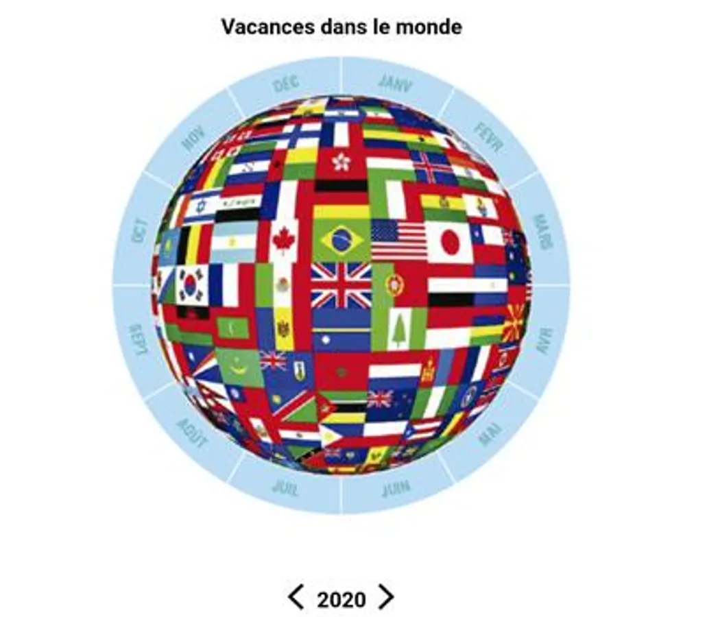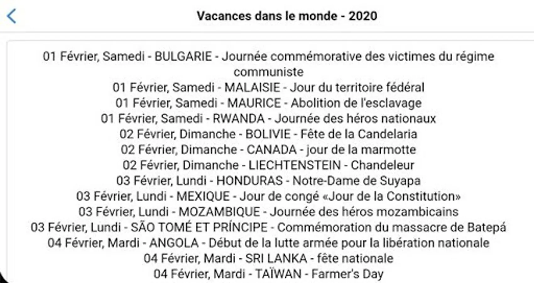 A list of vacations around the world for the years 19/20/21. It is possible to observe the holidays of more than 220 countries and also the events in a certain month.