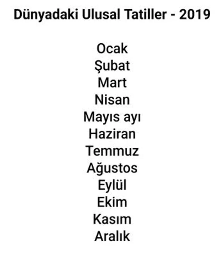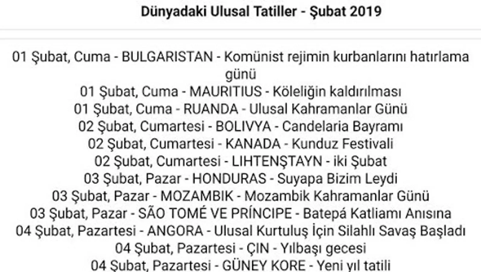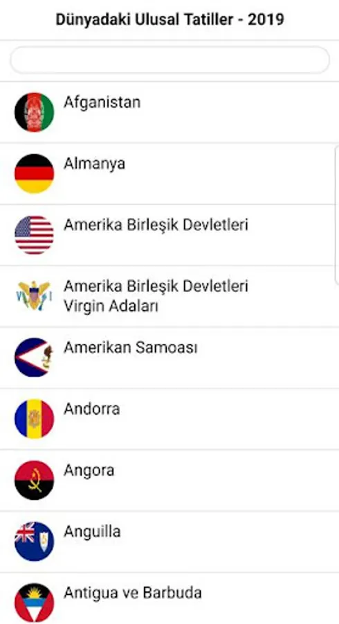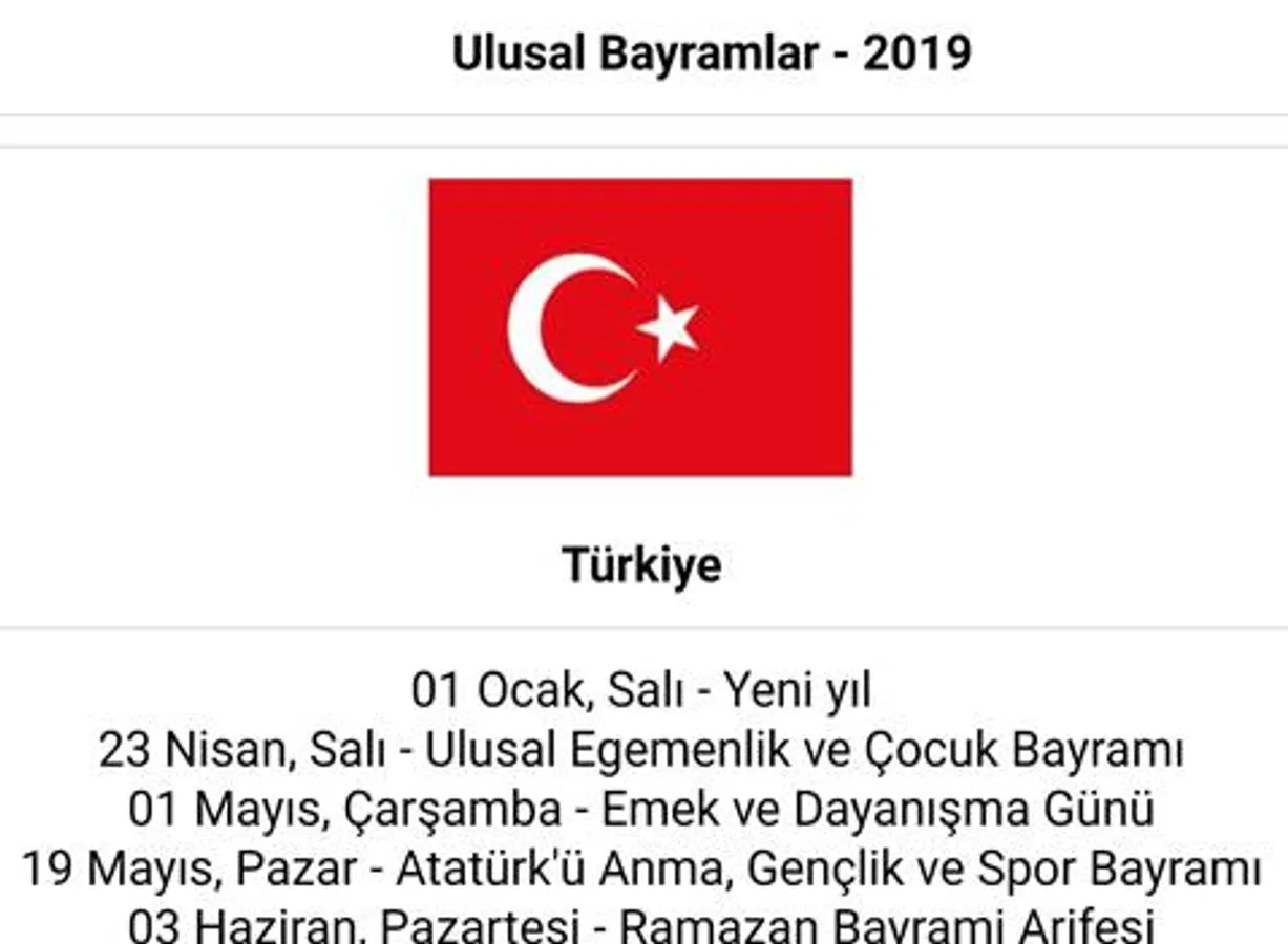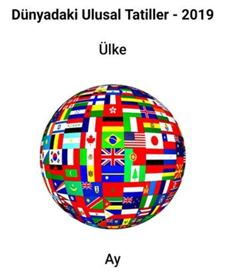 A list of National Holidays in the World for the year 2019. It is possible to observe the holidays of more than 220 countries as well as events occurring within a certain month.