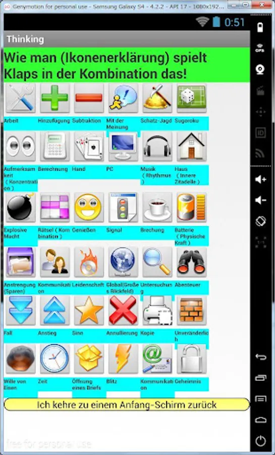 → If a specific condition is satisfied, more difficult questions (including explanations of icons etc.) will appear up to 10 questions.