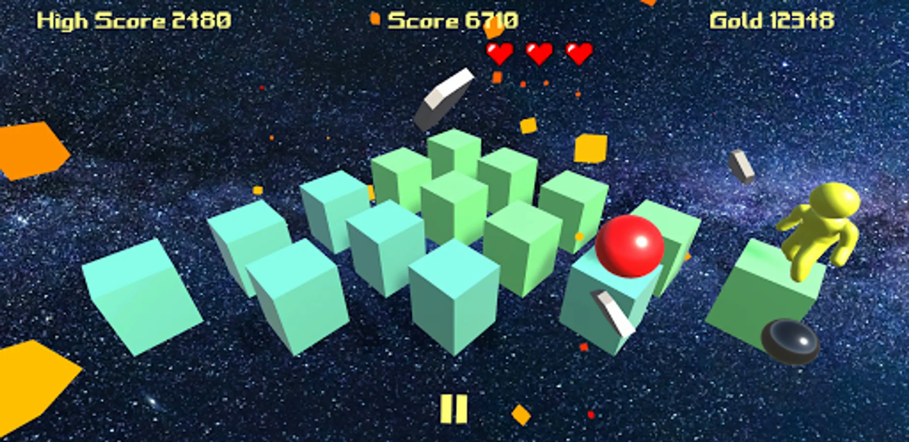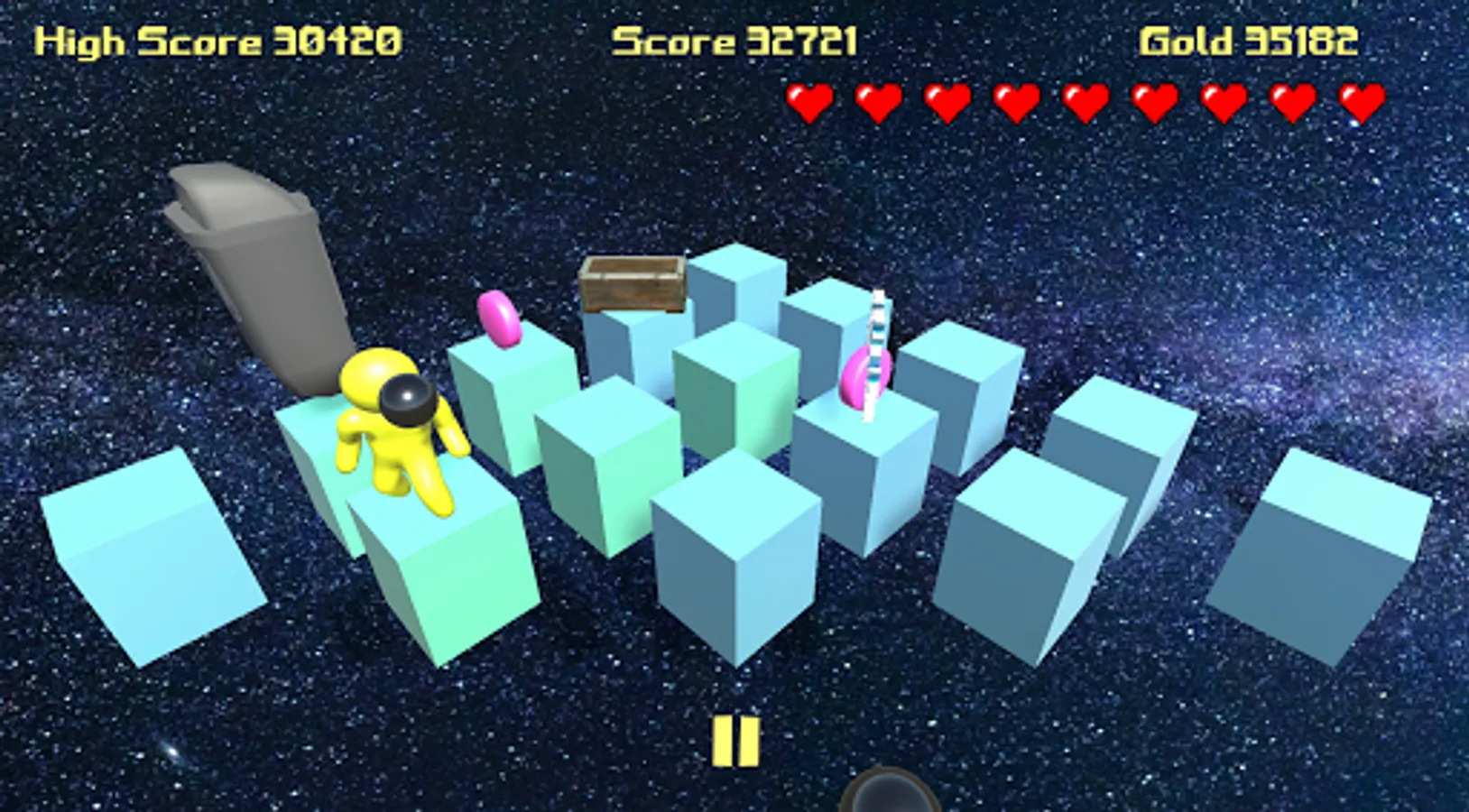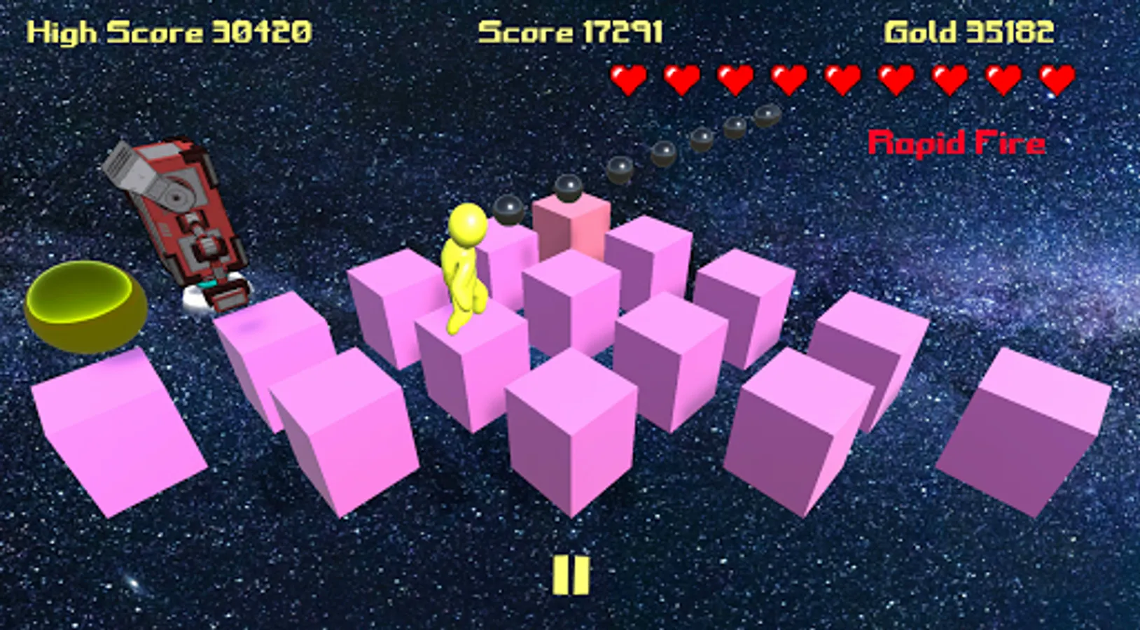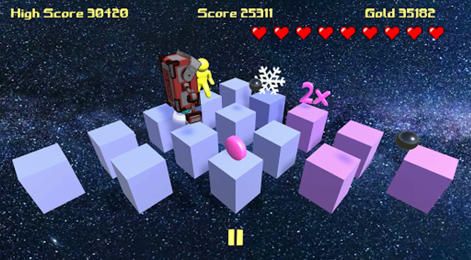 Pyramid run combines the classic mechanics of old-school video games with new age power-ups and enemies. Collect power-ups ranging from invincibility to a nuke. Defeat progressively harder enemies as you advance through the levels. Losing lives too quickly? Head on over to the shop to spend your in-game gold on some much needed hearts. Who could've guessed that shapes could be so dangerous!