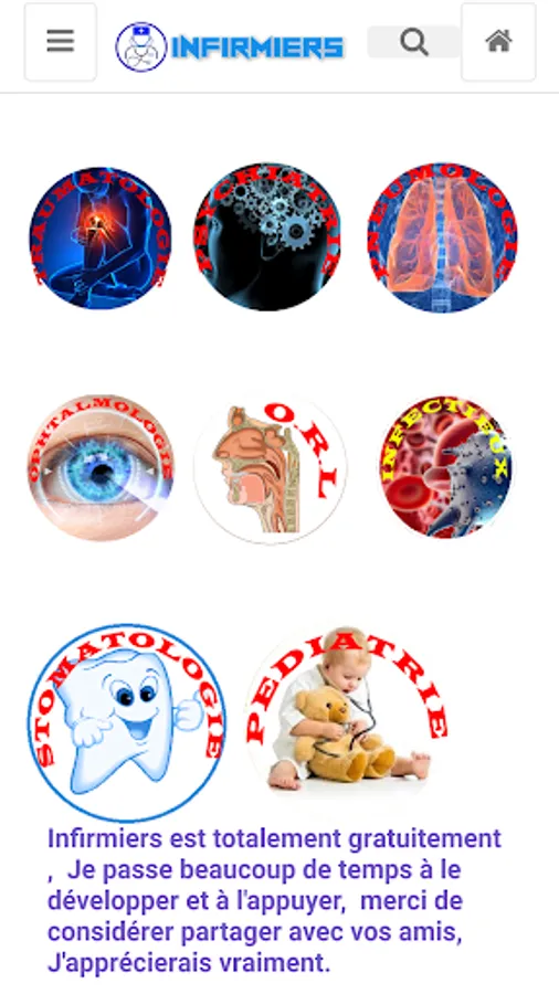This is an application that presents all the nursing sciences, the thermal and pratical data sheets, the anatomy - physiology, the pharmacology, the biological examinations and the medical examinations.