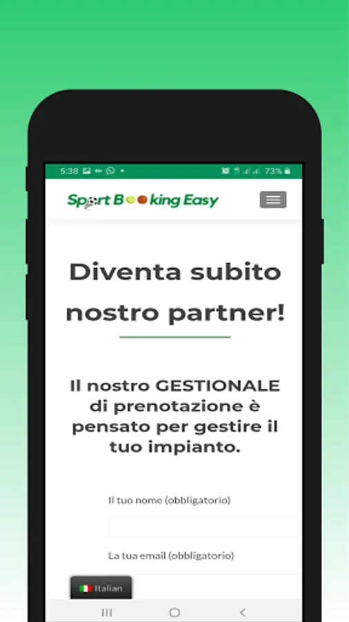 App dedicata alla prenotazione online dei campi di qualsiasi sport.