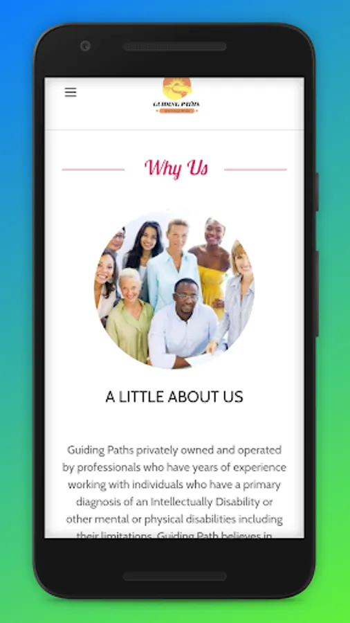 Guiding Paths is a convenient service app for family, guardians, friends and individuals who have been diagnosed with an Intellectual Disabilities and need support or that extra helping hand. Guiding Paths is privately owned and operated by professionals who have years of experience working with individuals who have a primary diagnosis of an Intellectually Disability or other mental or physical disabilities including their limitations.