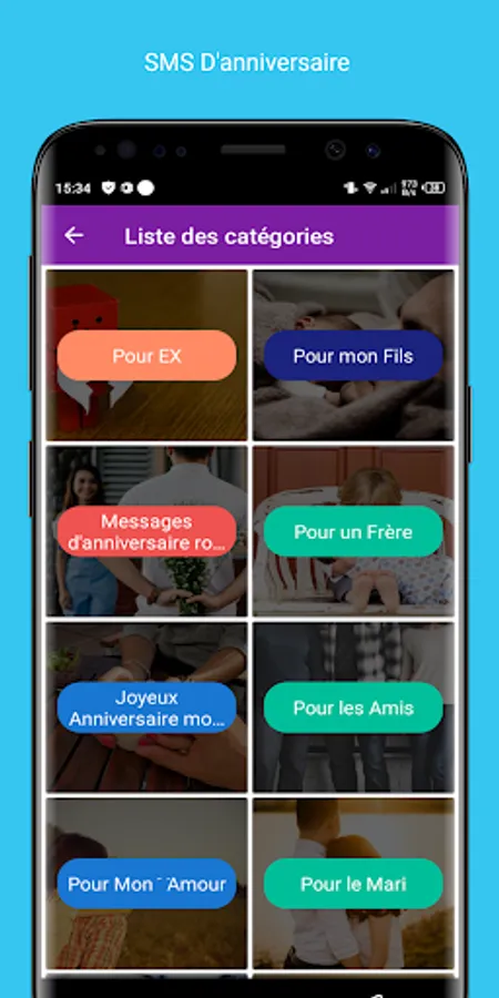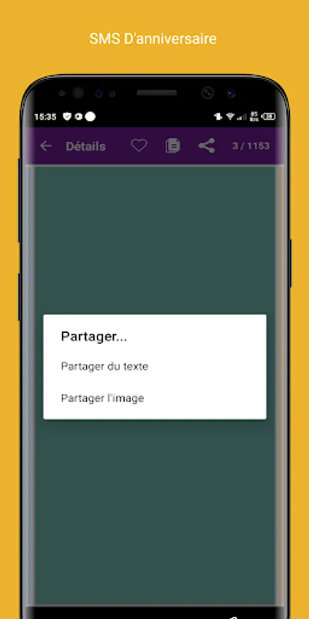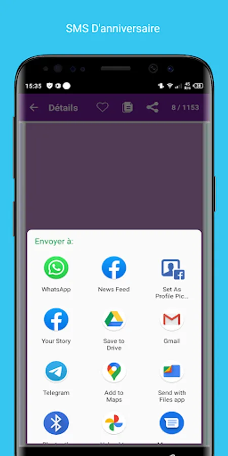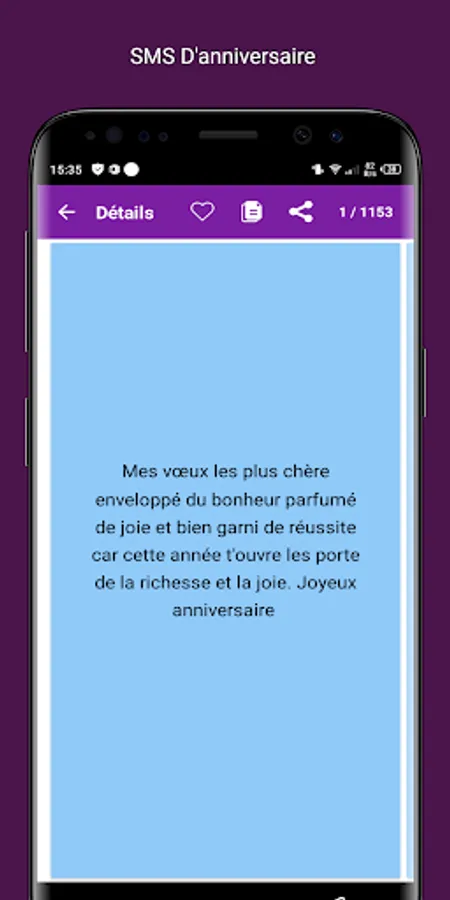 * Each SMS can be shared on Facebook, Twitter, WhatsApp, Google+ or SMS / Mail