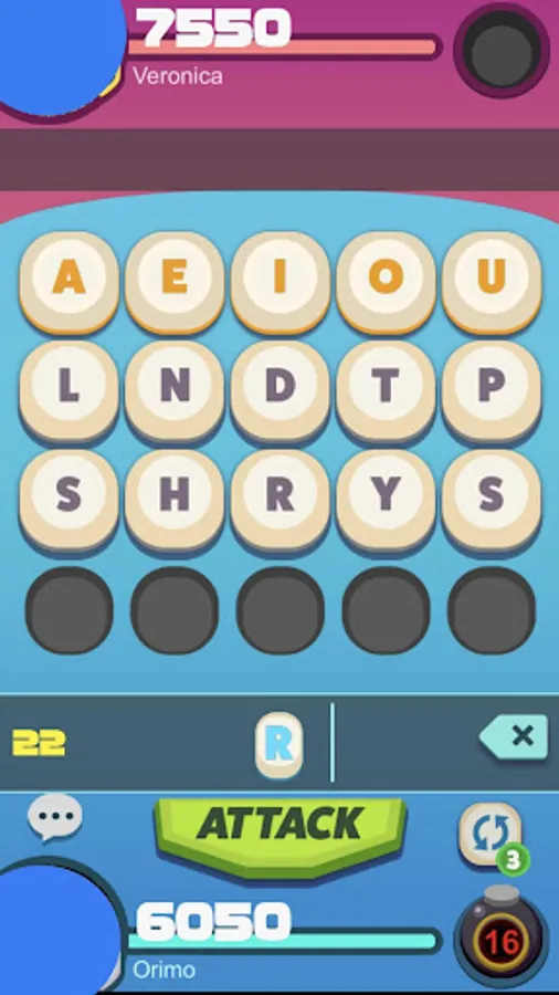 In this game, you can attack opponent by making words! You need to use opponent’s last letter of last word. Try making longer words than your friends to go to higher arena. The longer word you make, the stronger damage you attack! Cute stamp is also available for you to communicate:)