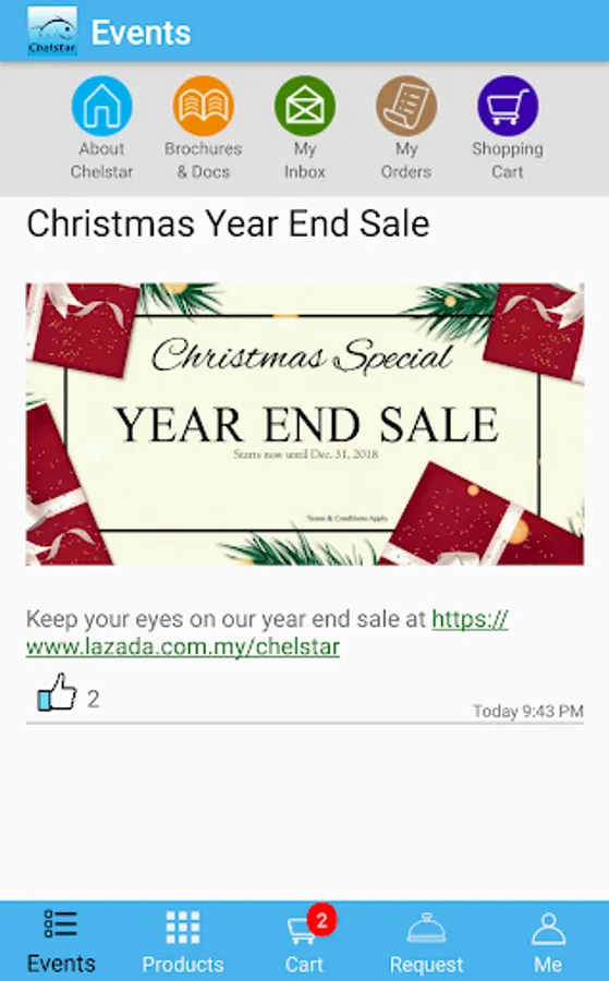 The Chelstar application is the official mobile application for Chelstar Sdn. Bhd. It allows Chelstar marketing management to communicate with its sales teams and customers effectively and efficiently. With the application, sales teams and customers will be well informed with important news, event updates and product release information.
