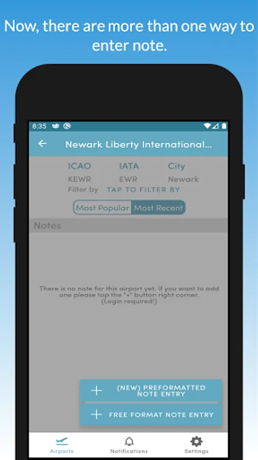 Airport Notes is a note sharing application across the pilots about airports they are flying.
