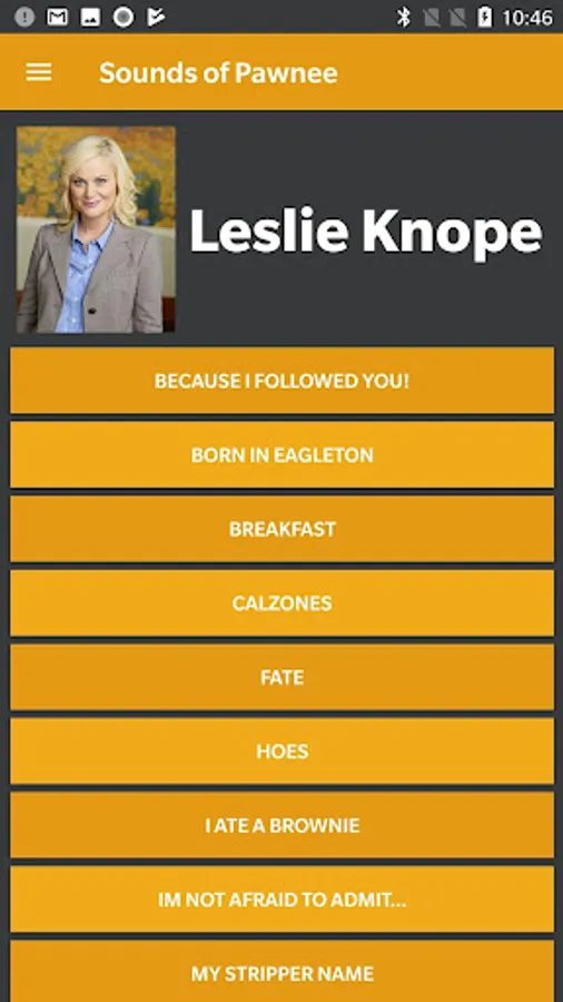 Have you ever wanted the sounds of your favorite Parks and Recreation characters in your pocket? Well now you can! It is LI-TER-ALLY the best thing ever. Featuring over 100 sounds from Ron Swanson, Leslie Knope, Chris Traeger, Tom Haveford, Andy Dwyer, and more.