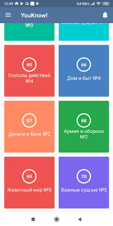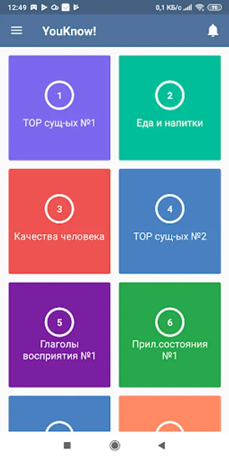 We recommend that you immediately choose a topic and go through it to the end, trying to remember unfamiliar words during the passage. At the end of the quiz, a table will appear with all the correct and incorrect answers. At this point, you will know exactly which words are remembered and which ones you should pay more attention to. We believe that this method of memorization is the most effective, because your attention is focused on what you do not know, and not on repeating already learned words. If this method does not suit you, there is a dictionary in the application menu.