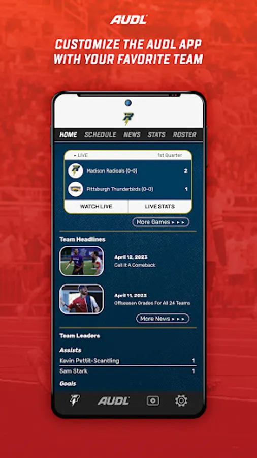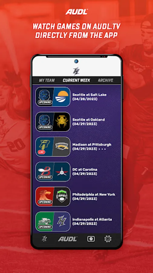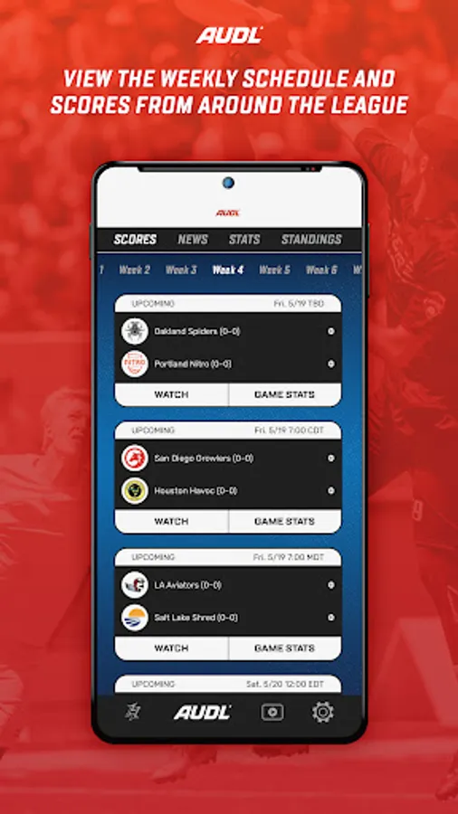 The Official AUDL Mobile App brings Ultimate right to your Android Phone! Browse Breaking News within the league, find out more about the current season's Scores, Standings, Upcoming Games, Videos, Stats, and more!