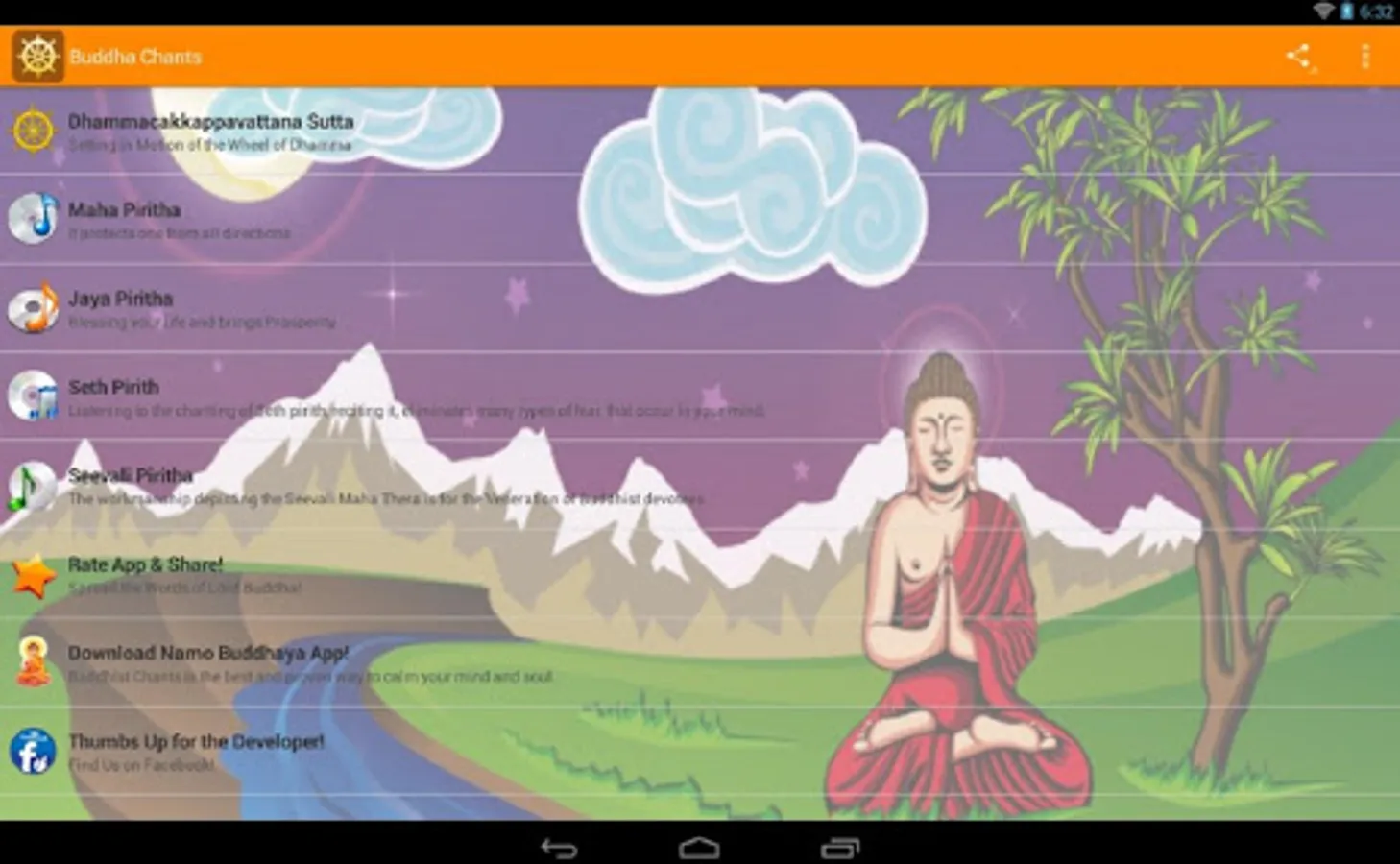 Buddha Chants App enables you to listen to the 5 Best chants of Lord Buddha anywhere.anytime without Internet Connection!