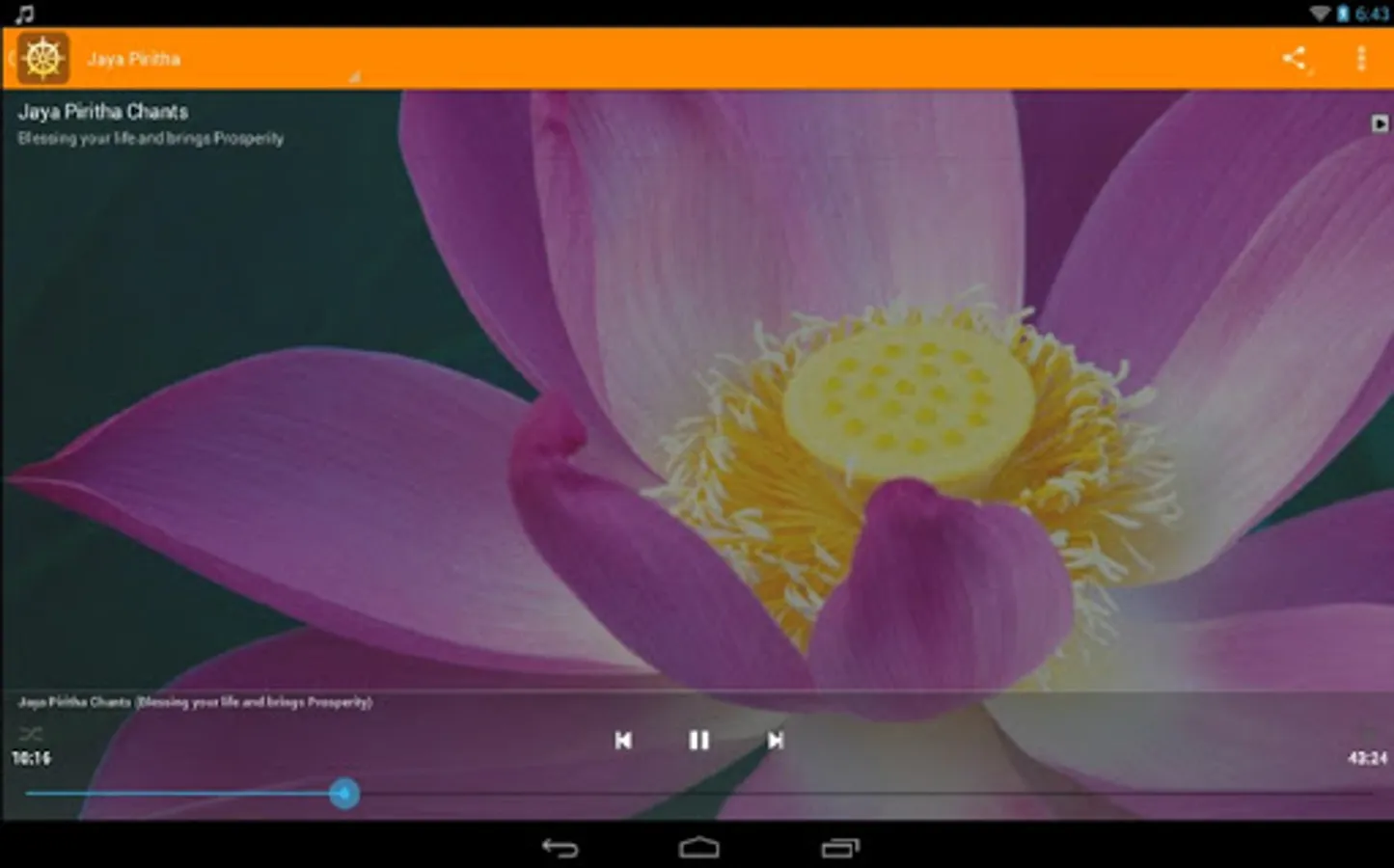 *When you exit the app while a Pirith Audio Track is still active and playing, you can see a small music note in the notification bar. That's how you can get back to the app and either stop or change the Pirith Track. The App will not be listed in Task Manager.
