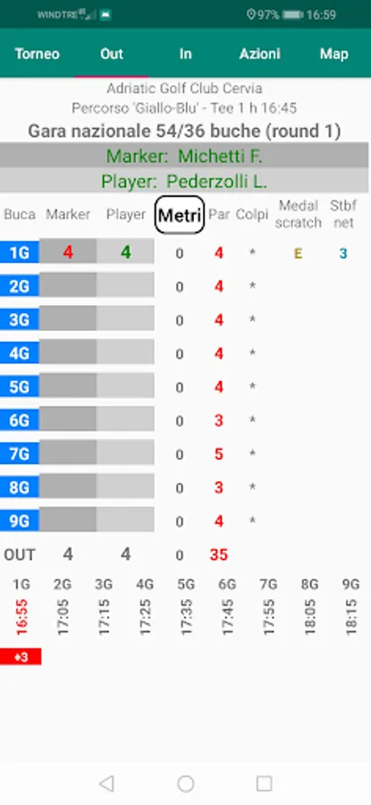 Totally eliminates the paper score. Cross-check the scores of a team with instant verification of the shots assigned by the player and the scorer. Indication of the advance / delay with respect to the time sheet. Ruling request, withdrawal from the tournament, virtual signature of the score. It also provides the Committee with the player's position on the field. It is possible to use this App only if authorized by the Committee that adopts the WatchGolf system (website + Android and iOS App) via username and password provided when registering for the race. MatchPlay races are also fully managed, with the choice of various parameters and with the determination of the top seeds. Competitions with any number of holes (from 1 to 18) and also with holes repeated several times are also managed.