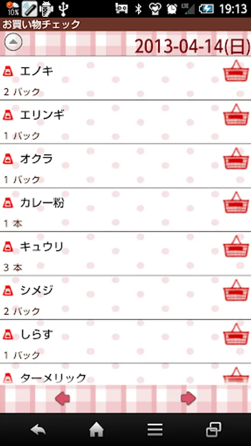 「Back」:Return to the shopping list.
