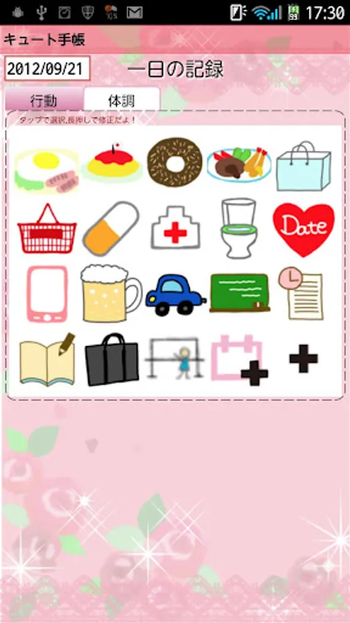2. You can see the list of the default event icons. Let's tap "Medication" icon as a sample.