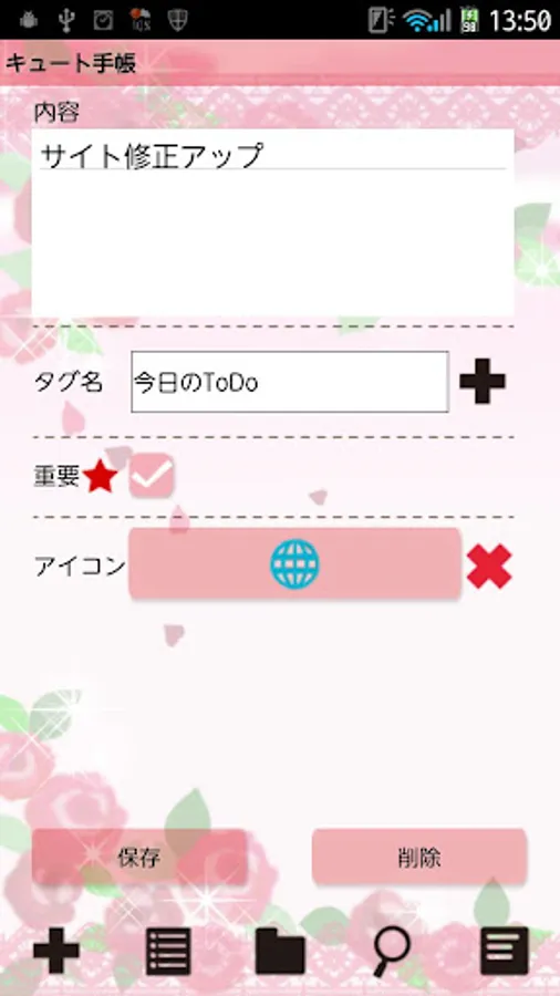 Save notes with tag names and sort them to folders! Use it as to-do list!