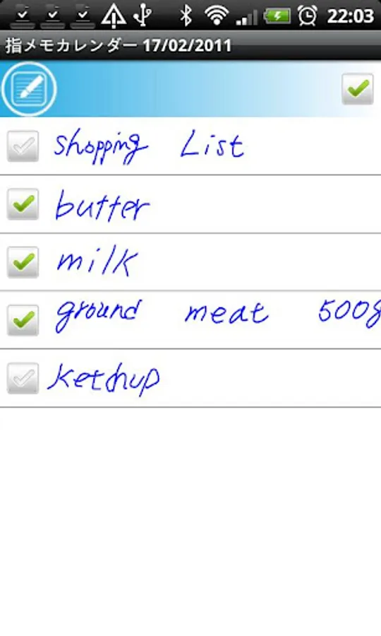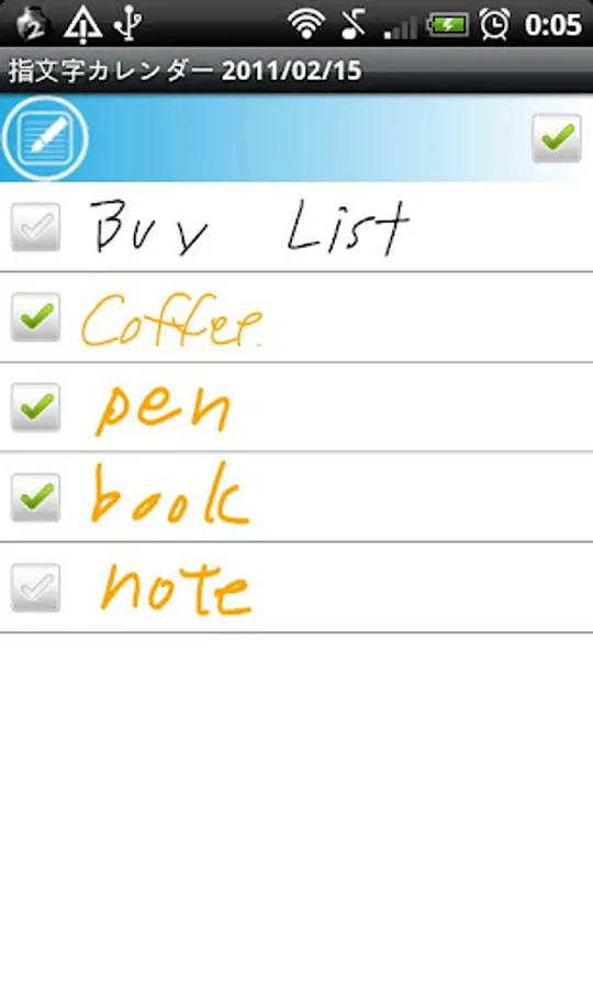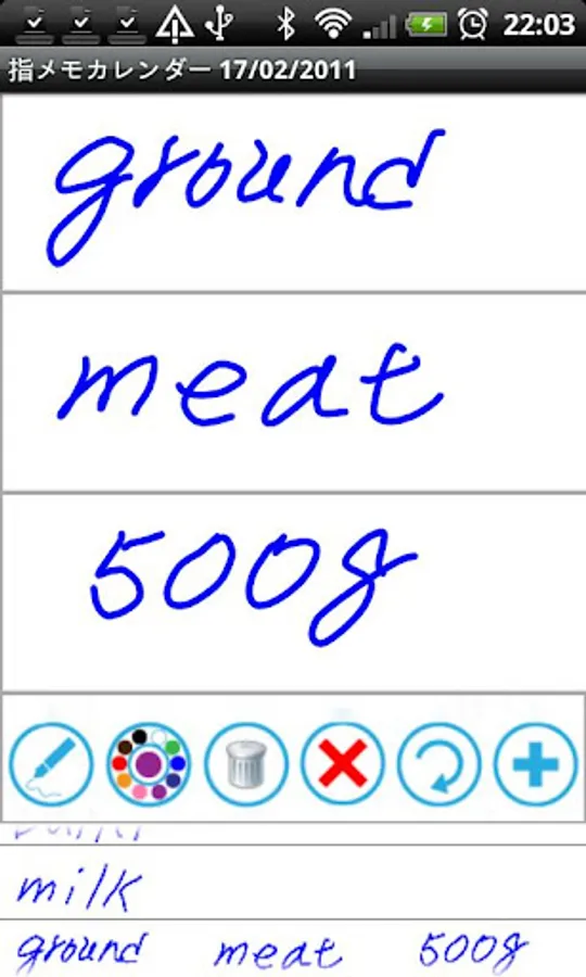 Your handwritten memo will be displayed in the list of the calendar when you register.